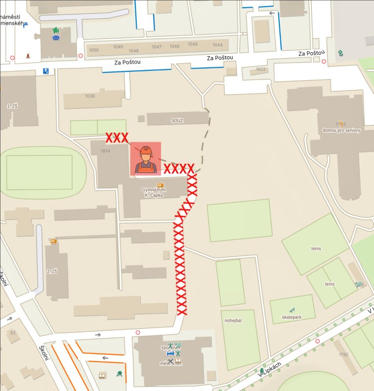 Od pondělí 26. května do konce školního roku budou v blízkém okolí budovy školy probíhat stavební práce. Konkrétně v parčíku u severní části budovy vznikne stavební zázemí rekonstrukce tělocvičny 2. ZŠ. Stavba bude také využívat komunikaci od sportovní haly k zadnímu vchodu budovy školy. Důrazně doporučujeme všem žákům i návštěvníkům používat pro přístup do školy ulici Za poštou a průchod u 1. ZŠ. Děkujeme za pochopení.