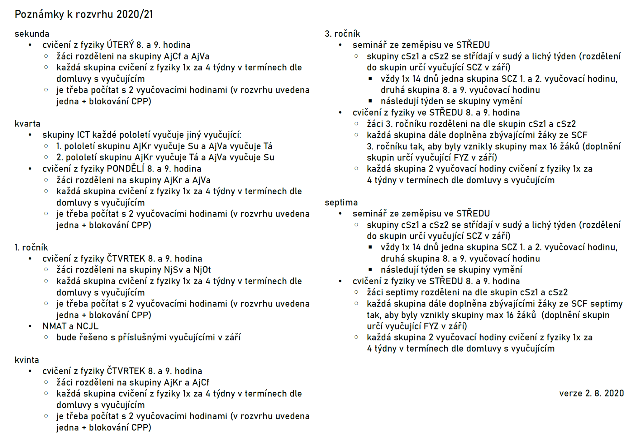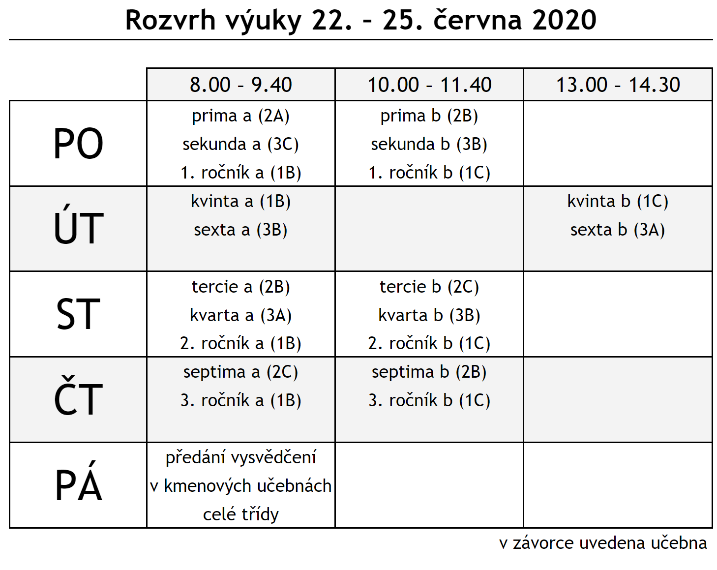 V červnu bude výuka na škole uzpůsobena probíhajícím maturitním a přijímacím zkouškám. Vzhledem k jejich časové a organizační náročnosti a s přihlédnutím k nařízení ministerstva zdravotnictví bude stále dominantně probíhat distanční výuka a: